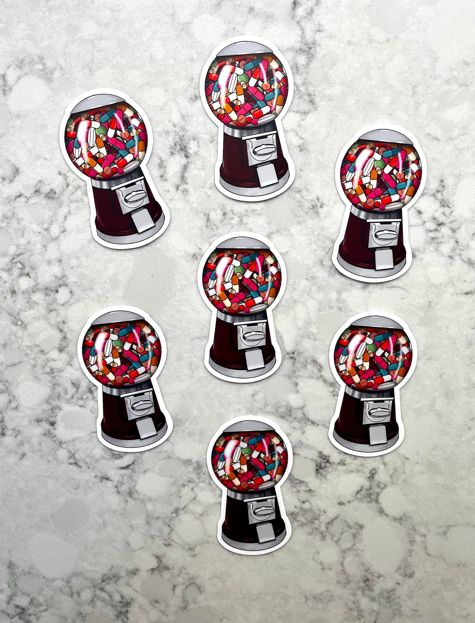 3” Waterproof Sticker Medicine Pills Gumball Machine Mental Health Digital Drawing Stickers for Water Bottles Laptop Kindle